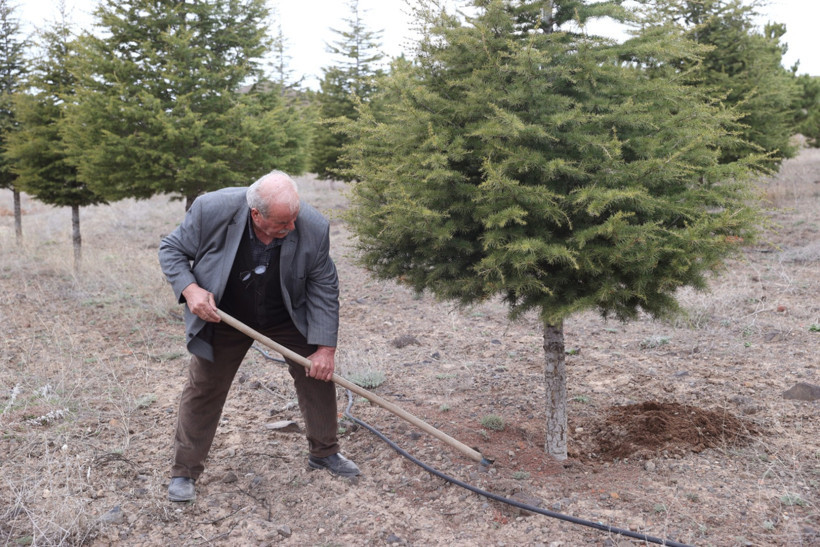 Çalışmasına dernek yönetimi ve gurbetteki hemşehrilerinin de destek verdiğini anlatan Yücel, ilerleyen yaşına rağmen bütün gücünü ağaçlandırma için harcadığını dile getirdi.