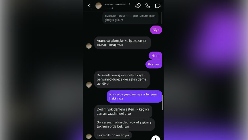 Kaçarak evlenen Berivan Yeşil ise “Eşimi seviyorum, ailem müsaade etmedi. Zorla kaçırılmadım, birbirimizi sevgiyle seçtik. Ailem, evliliğimiz hakkında tehditlerde bulundu. Kaçtığımız gün, aile bir araya gelerek intikam planı yaptılar,” diyerek yaşanan süreci anlattı.
