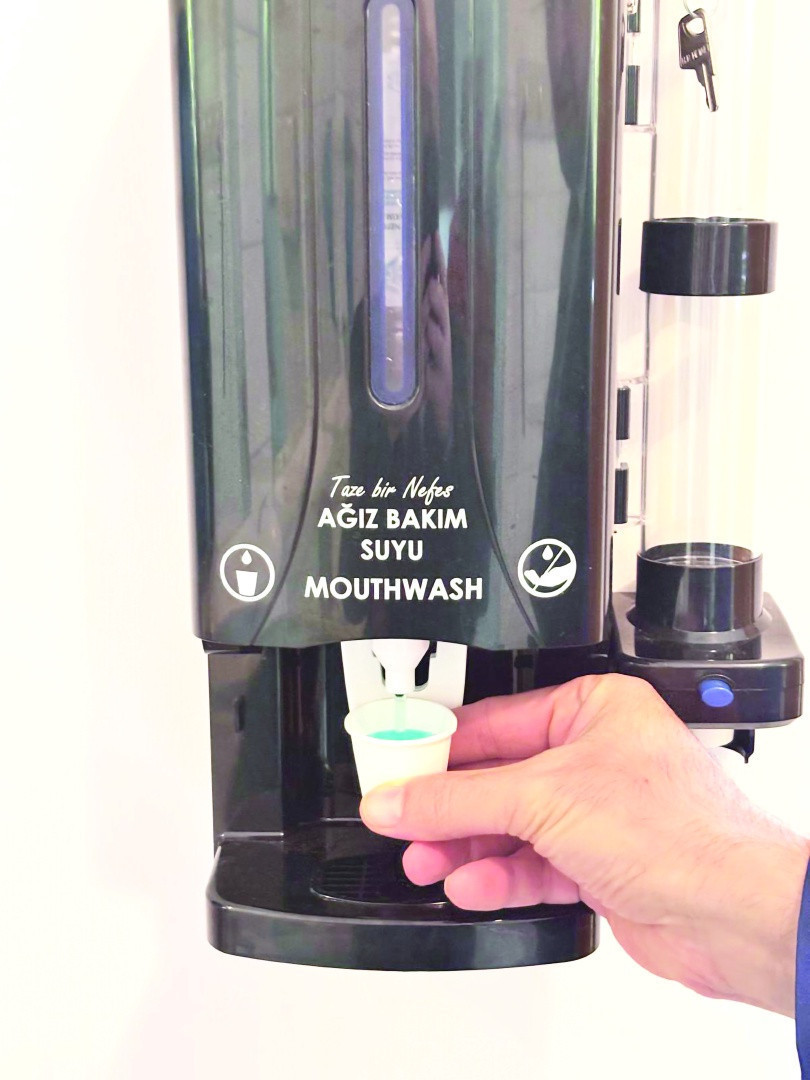 TBMM kulislerinde ağız sağlığı ürünlerinin yerleştirildiği cihazlar dikkat çekti. Vekiller, burada gargara yaparak ağız sağlıklarını korumakta ve ferah bir tat elde etmektedir.