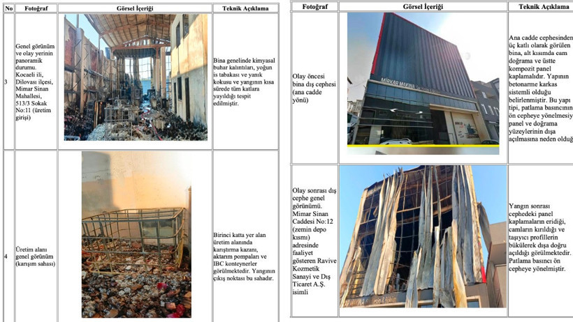 Rapora göre, “Yapı, iskan belgesi olmadan imalathane olarak kullanılmış; yangın merdiveni, sprinkler hattı, yangın algılama–alarm sistemi ve topraklama düzenekleri bulunmamaktadır. İşletme, yangın güvenlik projesi ve itfaiye uygunluk onayı olmadan üretime başlamış; iş güvenliği uzmanı ve işyeri hekimi görevlendirilmemiştir.”