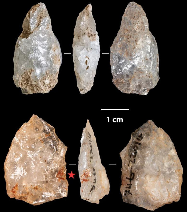 Kremasyon alanında bulunan yontulmuş taş alet uçları, bu nesnelerin mezar hediyesi olarak ateşe atılmış olabileceğini gösteriyor.