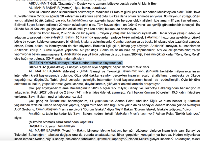 Bu ifadeler, TBMM TV canlı yayınında yer almadı ancak Meclis tutanaklarında kaydedildi.