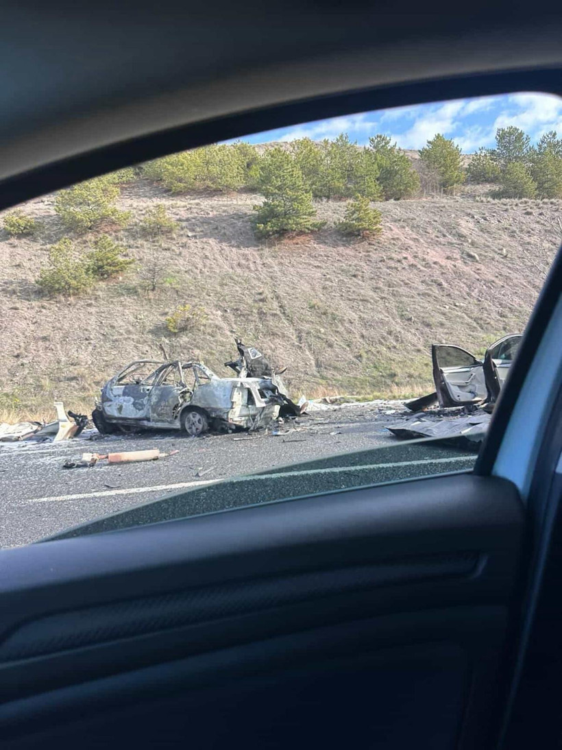Kazada bir araç alev aldı. İhbar üzerine kaza yerine polis, itfaiye ve sağlık ekipleri sevk edildi.