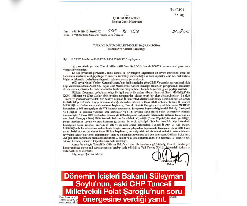 Geçtiğimiz dönem CHP’den Tunceli Milletvekilliği yapan Polat Şaroğlu, 26 Ocak 2022’de İçişleri Bakanı Süleyman Soylu’ya şimdilerde adını sıkça duyduğumuz dönemin Tunceli Valisi Tuncay Sonel hakkında soruşturma izni verilip verilmeyeceğini sordu.