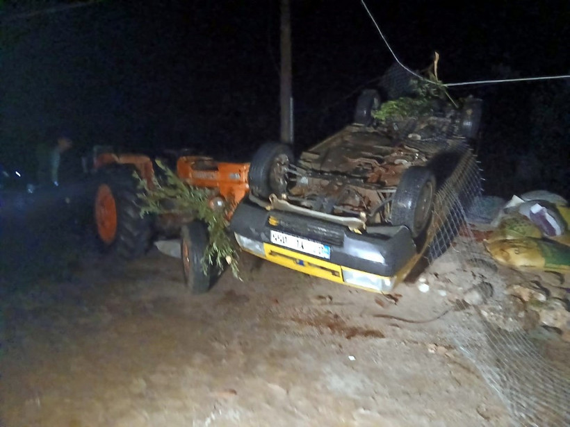 Hortumun yaklaşık 4 metre havada savurduğu park halindeki bir otomobil ters dönerek dururken, bir motosiklet ve bir kamyonet de zarar gördü.