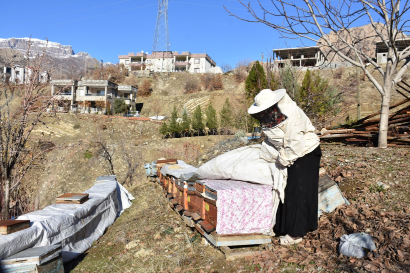 Kış aylarında evinin önündeki kovanlarını kontrol eden Kara, yaz aylarında kovanlarını Faraşin Yaylası'na götürüyor.