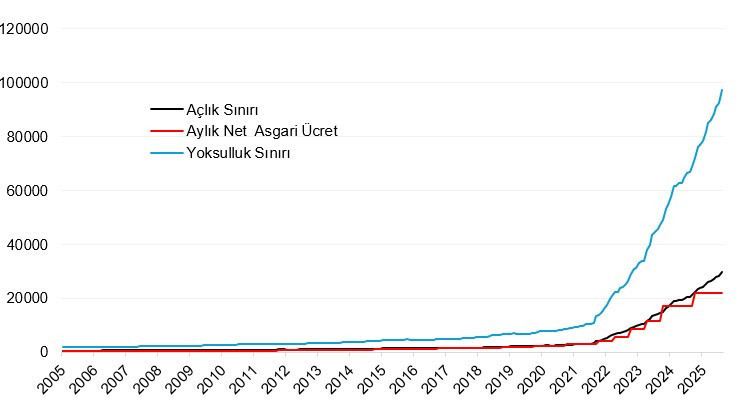 2017 yılında olduğu gibi, 2026 yılında da net asgari ücret, bir önceki yılın açlık sınırının, yani kasım 2025'te 29 bin 827 TL'nin altında belirlenmiş oldu.