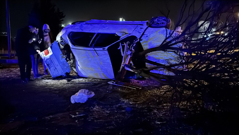 İlk kazadan yaklaşık yarım saat sonra aynı kavşakta ikinci bir kaza daha yaşandı. M.E.İ. yönetimindeki 43 AGC 088 plakalı otomobil, sürücüsünün kontrolünden çıkarak refüje çarpıp takla attı. Araç, önüne çıkan bir ağacı devirerek durabildi.