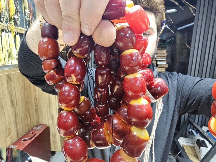 Tespih ustası Hadin Bulut, “Malzemeler 1900'lü yıllara ait Osmanlı sıkma kehribarlarıdır. Burada yaklaşık 600 parçalık bir malzeme topluluğu mevcut. Bu parçaların bir kısmı çadır düğmesi, bir kısmı tespih, bir kısmı da hayvan boyunlarına takılan objelerden oluşuyor. Şu anda bunları ustalara ayırdık ve tespih yapımı için hazırlıyoruz. Ustalar tek tek işleyerek tespih üretecek ve biz bunları sıfır ürün olarak satışa sunacağız. 6 kiloluk malzemeden yaklaşık 2 kiloluk tespih elde etmeyi planlıyoruz. Fiyatlar, malzemenin desenine, boyutuna ve ustaya göre değişiklik gösterebilir. Yaklaşık 6 kilodan 100 adet tespih çıkmasını bekliyoruz. Bu malzemeleri yurt dışında toplayan bir arkadaşımız getirdi. Belki 5, belki de 20 yılda toplandı. Artık bu iş bir sektöre dönüştü. Ortalama bir ev parası verdik; yaklaşık 90 bin dolar civarında. İnşallah zarar etmeyiz ama zarar etme ihtimalimiz de mevcut. Eski bir malzeme olduğu için tam iç yapısını bilemiyoruz. İçinde çatlak olabilir, bu nedenle zarar etme riski her zaman mevcut.” şeklinde konuştu.