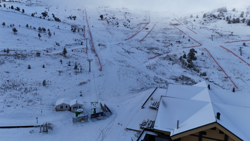 Kayak merkezi Kartalkaya'da kar kalınlığı yaklaşık 10 santimetreye ulaştı ve oluşan beyaz güzellik dronla görüntülendi.