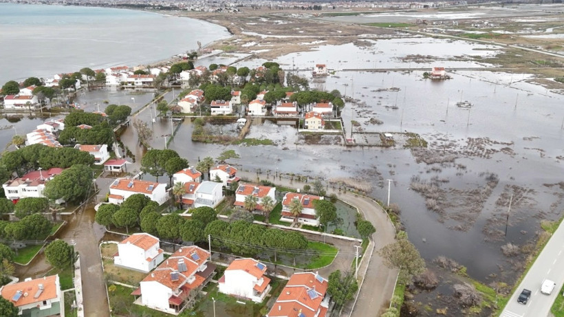 Kuvvetli rüzgar ve aralıksız devam eden yağmur, deniz seviyesini yükselterek birçok evin ve tatil sitesi yollarının sular altında kalmasına yol açtı.