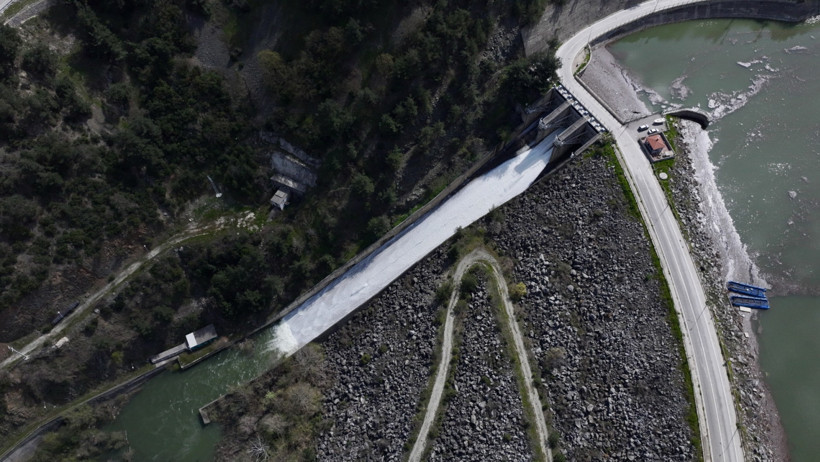 Tam kapasiteye ulaşan Doğancı Barajı'nın tahliye kapaklarının açıldığı görüldü.