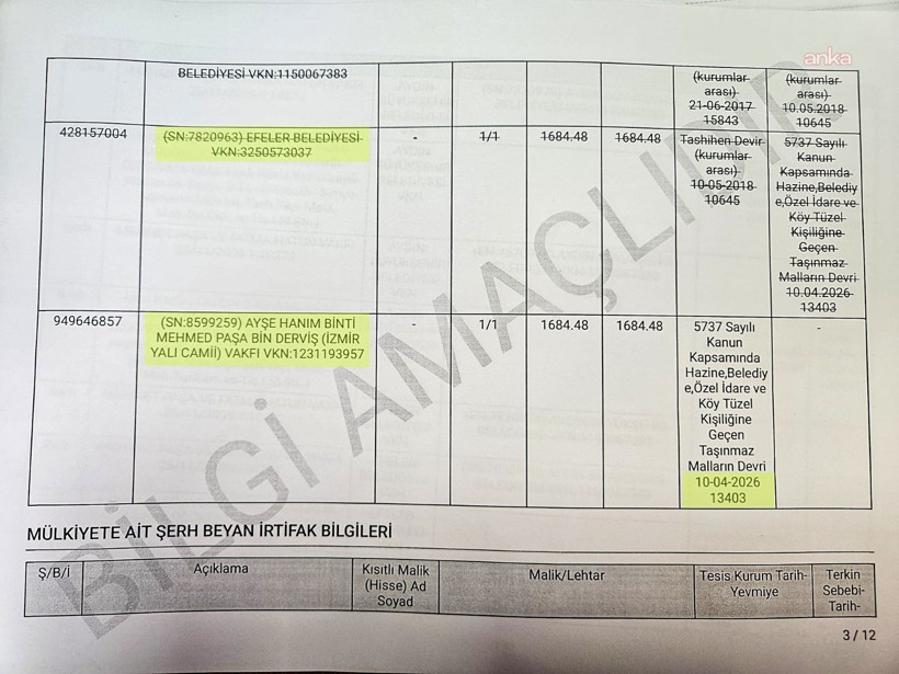– “Maalesef böyle bir kanunumuz var. 5337 sayılı kanun 30. maddesinde Aralık ayında böyle bir değişiklik yapılmış. Takip ediyorduk. Tarihi tescil olan binalarda eğer bir vakıf izi, emaresi ya da ibâresi bulunursa Vakıflar Bölge Müdürlüğü hiç sorgusuz, sualsiz, tapu devrini gerçekleştirebiliyor şeklinde bir değişiklik yapılmıştı. Maalesef biz de bir silkeleme operasyonunun bir ucuyla karşı karşıyayız. Bu düpedüz bir siyaset. Biz Efeler Belediyesi olarak tüm hukuki yolları kullanarak bu duruma karşı duracağız. Hukuki yolları kullanacağız.”