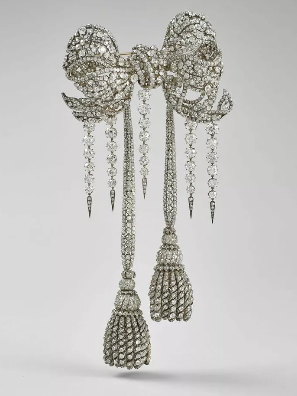 Son olarak, François Kramer tarafından 1855-1864 yılları arasında tasarlanan büyük korse düğümü de çalındı. Gümüş ve altın işçiliği ile dikkat çeken bu düğüm, pırlantalarla süslenmiştir.