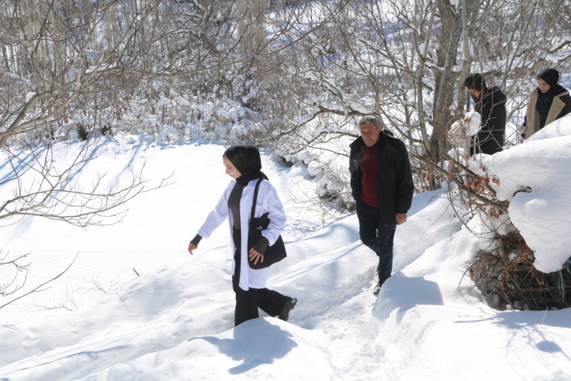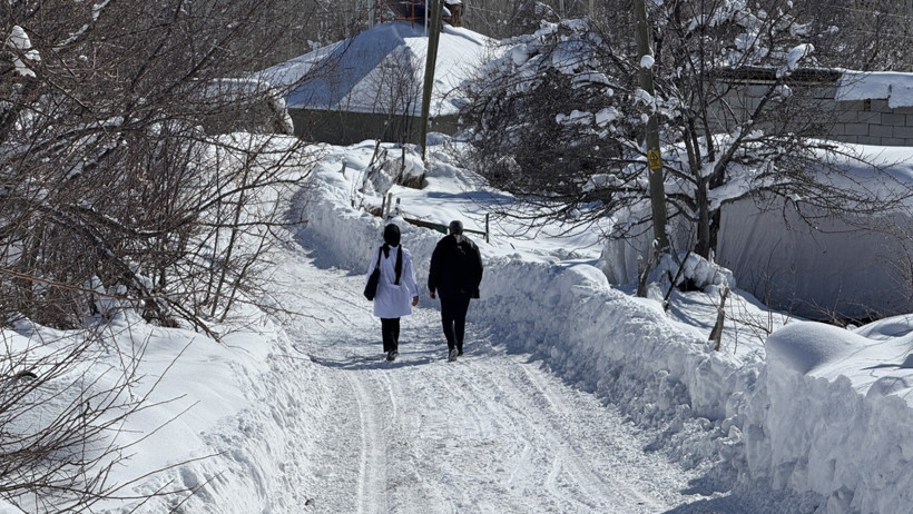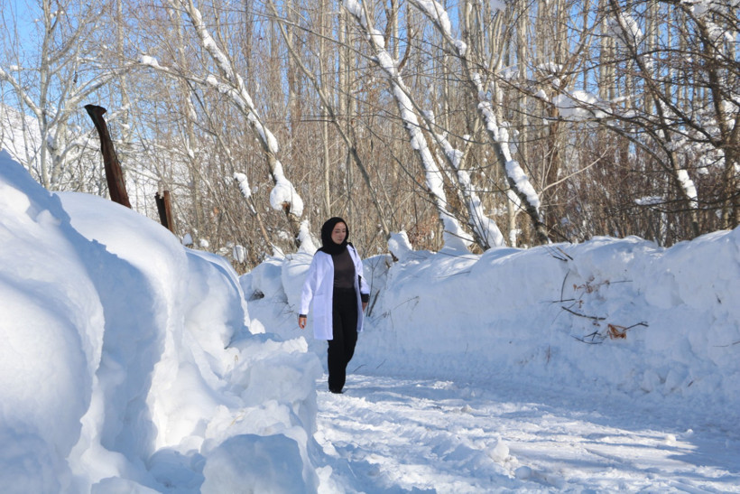 Hakkari'nin Yüksekova ilçesinde görevli ebe Aysel Daşçi, kar kalınlığının 1.5 metreye kadar çıktığı kırsal alanlarda yürüyerek sağlık hizmeti sağlıyor.