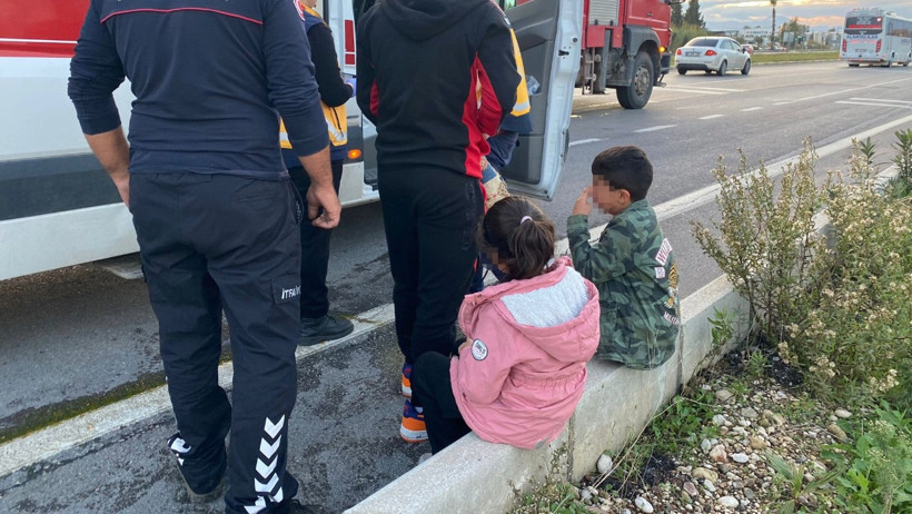 Araçta bulunan ve kazayı yara almadan atlatan iki kardeş, gözyaşları içinde kalırken, itfaiye ve sağlık ekipleri çocukları teselli etti.