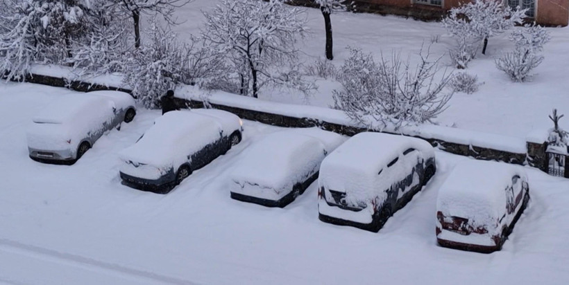 Park halindeki araçlar karla kaplanırken, belediye ekipleri temizlik çalışmalarına hız verdi. Kırsal alanlarda da kar yağışı etkisini gösterdi.