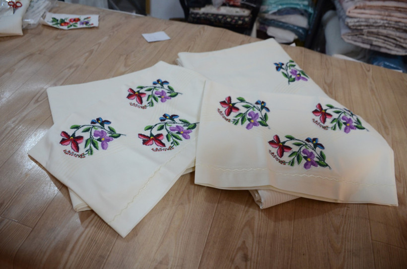 Köylerden topladıkları eski el emeği ürünleri kesip ütüleyerek yeni tasarımlarla günümüze uyarladıklarını dile getiren Uysal, gençlerin artık geleneksel el işlerine eskisi kadar ilgi göstermediğini söyledi.