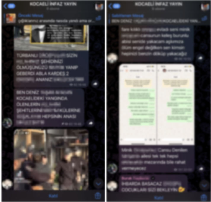 Olayın ardından 'Kocaeli İnfaz Yayın' adlı bir Telegram sayfasında, yangında hayatını kaybedenlere yönelik küfür ve hakaret içerikli paylaşımların yapıldığı ortaya çıktı.