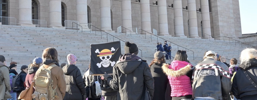 Finlandiya'nın başkenti Helsinki'de Parlamento Binası önünde toplanan vatandaşlar, hükümetin kemer sıkma politikalarını protesto etti.