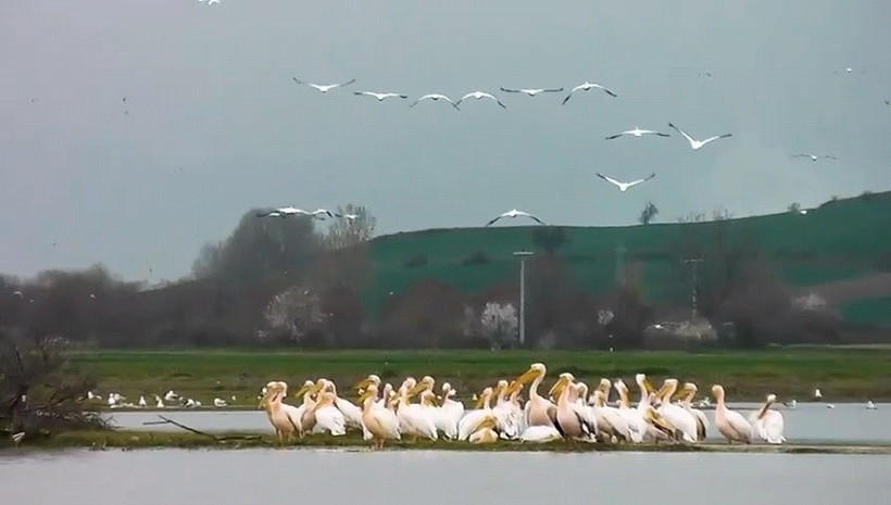 Daha önce ördek, leylek ve martı gibi türleri ağırlayan baraj, bu kez pelikanları misafir etti.