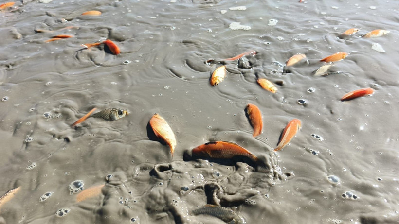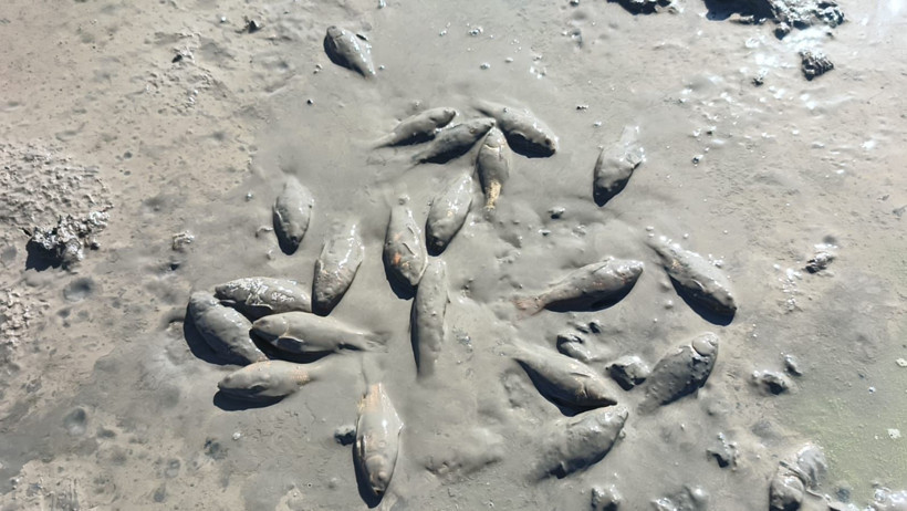 Sadece sığ alanlarda kalan balıklar, oksijen yetersizliği nedeniyle yaşamlarını yitirdi.