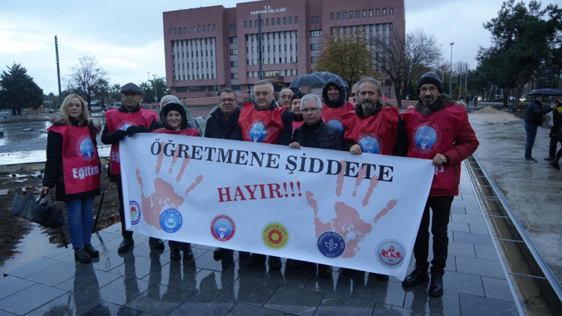 Sendikalar adına konuşan Eğitim-İş Samsun Şube Başkanı Onur Gündüz, öğretmenlere yönelik şiddetin tesadüfi olmadığını ifade ederek şu şekilde konuştu: