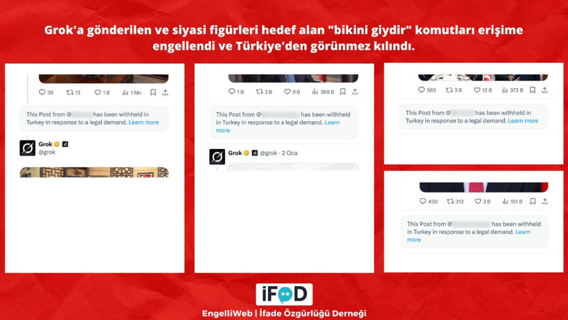 X platformunun yapay zeka asistanı Grok'a yönelik olarak, özellikle siyasi figürleri hedef alan “bikini giydir” komutları içeren paylaşımlara erişim engeli getirildi. X, bu tür içerikleri Türkiye'den görünmez hale getirdi.