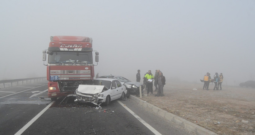 Aksaray'da yoğun sis ile birlikte, TIR'ın kırmızı ışıkta duran dört araca çarpması sonucu gerçekleşen kazada bir kişi yaralandı.