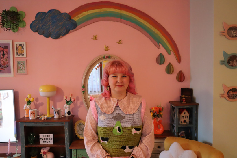 Minyatür ve figürler yaparak geçimini sağlayan Buğçe İçiuyan, çocukluğundan beri renklerle kurduğu bağı paylaştı: “Her zaman renkliydim, çocukken de renkleri çok severdim. Annemin en canlı eşyalarını alıp kullanırdım, bunları evime de yansıttım. Beğendiğim her şeyi bir arada kullanmaya çalışıyorum ve bu eşyaların uyumlu olduğunu düşünüyorum. Bu evde masallardan ve çizgi filmlerden ilham alıyorum. Hala masalları çok seviyorum, renkli dünyaları benim için çok özel. Renkler benim için çok önemli; kafamda sürekli yeni renk değişiklikleri yaparım ve renkli kıyafetler giymeyi tercih ederim.”