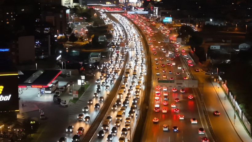 D-100 karayolu Yenisahra bölgesinde trafik tamamen durma noktasına geldi. Yoğun durum havadan da görüntülendi.