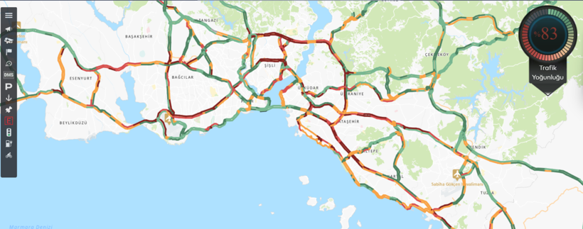 İstanbul Büyükşehir Belediyesi'nin CepTrafik uygulaması üzerinden elde edilen verilere göre, şehir genelindeki trafik yoğunluğu yüzde 83 seviyesine ulaşmış durumda.