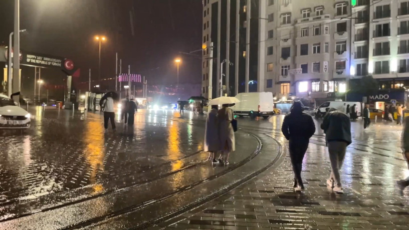 İstanbul'un turistik bölgelerinden Taksim'de ani bir şekilde başlayan sağanağa hazırlıksız yakalananlar, duraklara ve dükkanların tentelerinin altına sığınmak zorunda kaldı. İstiklal Caddesi ise sular altında kaldı.