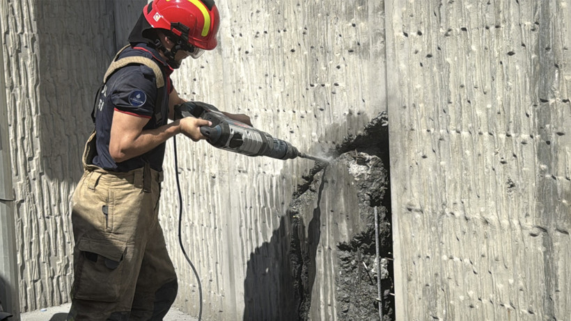 Ekipler, öncelikle sesin geldiği yerden duvarı kırarak içerideki kişiye ulaşmaya çalıştı. Mahsur kalan kişinin oldukça bitkin olduğu ve vücudunun çeşitli yerlerinde yaralar bulunduğu tespit edildi. Dar ve tehlikeli alandan çıkamayan kişi için itfaiye ekipleri, darbeli matkap ve beton kesme aletleri kullanarak yaklaşık 15 santim kalınlığındaki duvarı delmek zorunda kaldı.