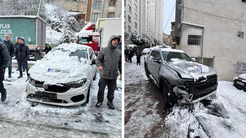 Kağıthane Yeşilce Mahallesi’nde, saat 14.15 sıralarında aniden etkili olan kar yağışı sonrasında, 34 FRT 676 plakalı bir kamyonetin sürücüsü yokuştan inmeye çalıştı. Ancak kamyonet, kısa bir süre sonra şoförün kontrolünden çıktı.