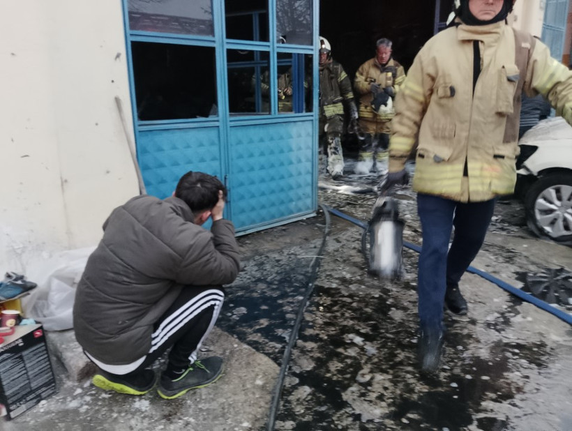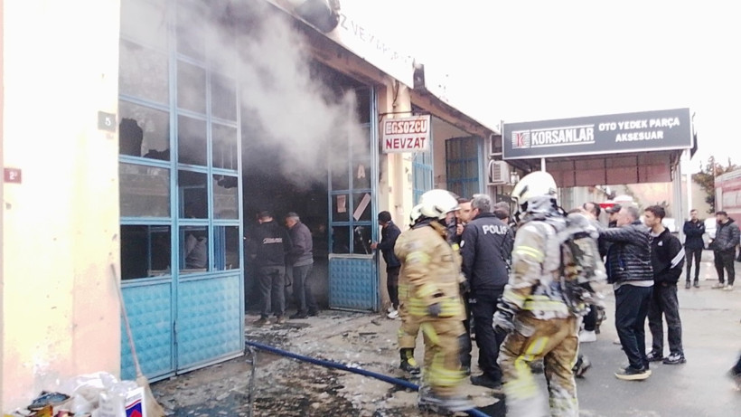Yangın sonucu dükkan kullanılmaz hale gelirken, içerideki iki otomobil de significant hasar aldı.