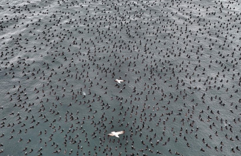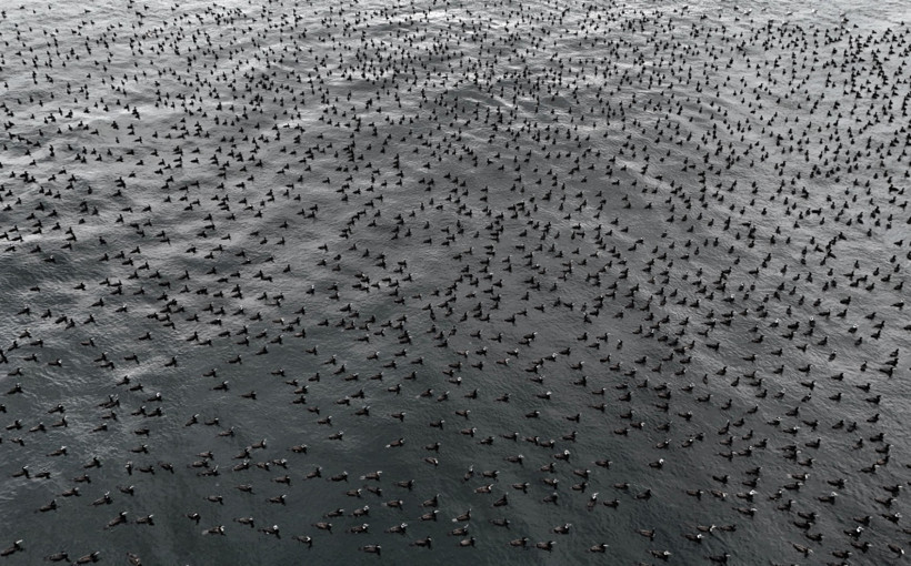Çiftleşme mevsiminde topluca bir araya gelen karabataklar, havadan çekilen görüntüleriyle belgeselleri andıran sahneler oluşturdu.