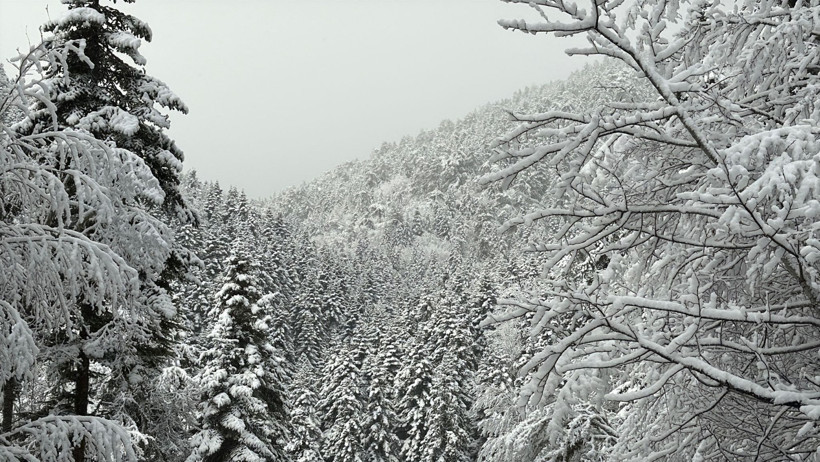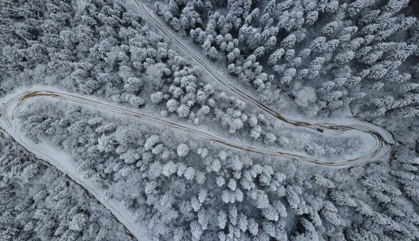 Kar yağışı ile beraber, Ömür Ahmet Kıran mevkisindeki çam ağaçları beyaz örtüyle kaplanarak adeta bir görsel şölen sundu.