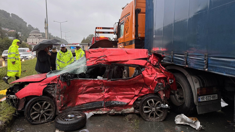 Otomobil, Rize yönünde ilerleyen D.M. idaresindeki bir TIR'a çarptı. Olayın bildirilmesi üzerine bölgeye 112 Acil Servis ve polis ekipleri yönlendirildi.