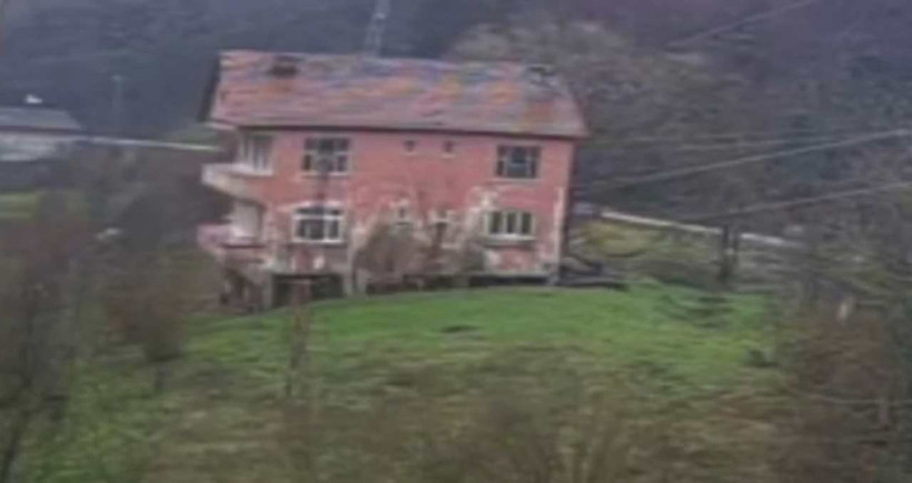 Kastamonu'nun Cide ilçesinde yaşanan heyelan riski sebebiyle boşaltılan iki katlı bir ev, çökmüş durumda. O anlar çevredeki güvenlik kamerasına anbean yansıdı.