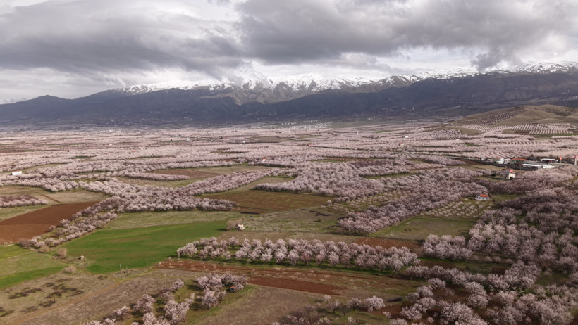 Tüm yurtta yaşanan yağışlar nedeniyle Malatya'da bu yıl tarım ürünlerinde kaliteli verim beklenirken, ilkbaharın gelişi ile birlikte geçen yıl büyük bir oranda zirai dondan etkilenen kayısı ağaçları çiçek açmaya başladı. Yaklaşık 9 milyon kayısı ağacının bulunduğu kentte beyaza bürünen Malatya Ovası'nda kayısı ağaçlarının çiçekleri, havadan dronla görüntülendi.