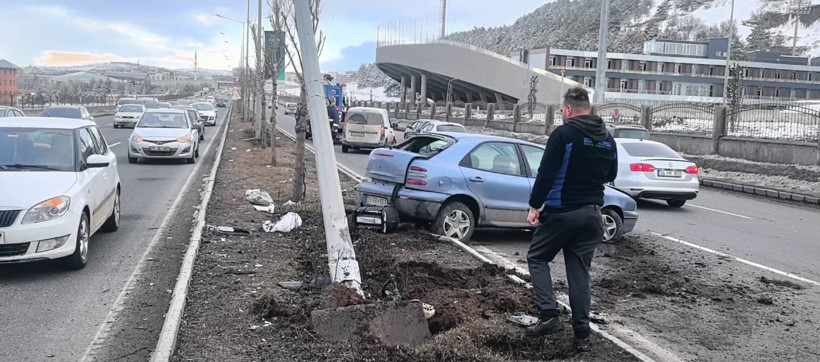 Erzurum'un Çat Yolu Atlama Kuleleri önünde, bir ticari araç ile otomobil arasında meydana gelen çarpışma korku dolu anlara sahne oldu. Çarpmanın etkisiyle otomobil, kontrolsüz bir şekilde orta refüje savrulup aydınlatma direğini devirdi. Bu şiddetli darbe sonucunda refüje çıkan araç, adeta kullanım dışı kaldı.