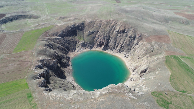 Sivas'ın Zara ilçesine bağlı Canova köyü yakınlarındaki Kızılçan Gölü, eşsiz özellikleriyle dikkatleri üzerine çekiyor. Uçsuz bucaksız bir arazide 100 metrelik derinlikte bulunan bu göl, yaz aylarında turkuaz rengi ile göz kamaştırarak Anadolu'nun gözbebeği olarak anılıyor. Ancak son günlerde etkili olan soğuk hava şartları nedeniyle göl tamamen donmuş durumda. Kar kalınlığı yer yer 30 santimetreyi bulurken, ortaya çıkan manzaralar adeta kartpostal niteliğinde. Donmuş göl havadan görüntülendi.