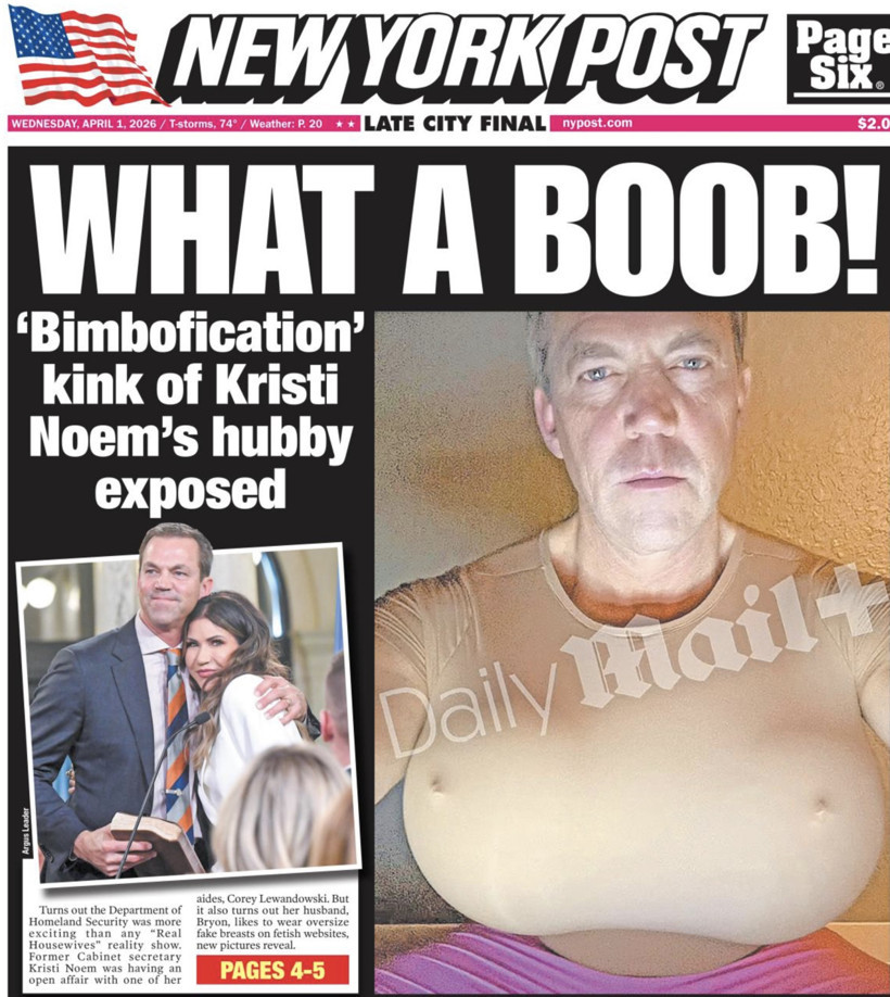 ABD'nin eski iç güvenlik bakanı Kristi Noem'in 34 yıllık eşi ve 3 çocuğunun babası Bryon Noem'in kadın kılığına girmiş ve sahte göğüsler kullandığı fotoğrafların sızmasından sonra Washington'da yeni bir tartışma başladı…