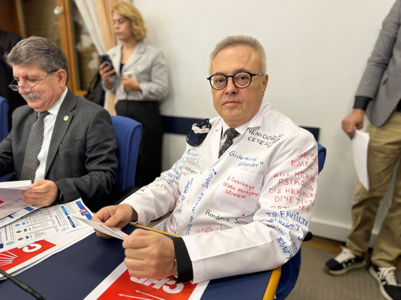 CHP Uşak Milletvekili Ali Karaoba, beyaz önlük giyerek öldürülen hekimlerin isimlerini üzerine yazdı.