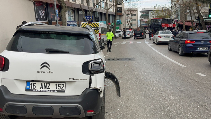 Freni boşaldığı öne sürülen 16 ZP 119 plakalı çift katlı otobüs, önce park halindeki 16 ANZ 152 plakalı araca, ardından ise bir manav dükkanına çarptı.