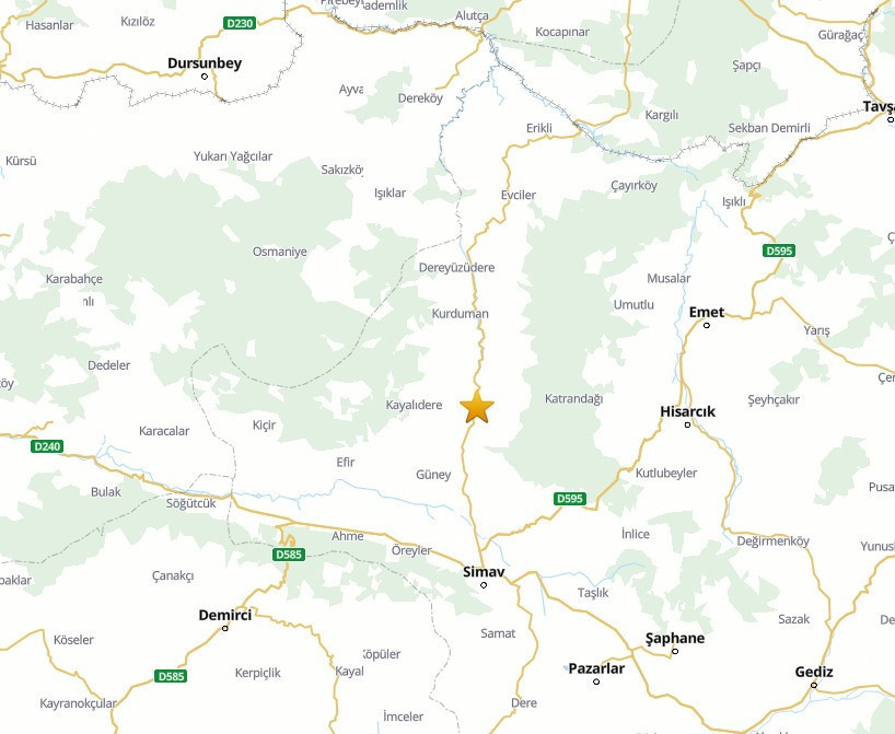 Kütahya'da deprem meydana geldi. AFAD, Simav'da saat 17.31'de olan depremin 4.8 büyüklüğünde ve yerin 9.12 kilometre derinliğinde gerçekleştiğini duyurdu.