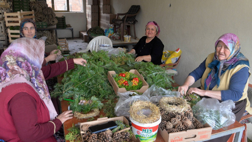 Aktürk, bu sezon için 1 milyon çelenk ihracatı için yoğun bir çalışma yürütüldüğünü ve toplamda 3 milyon avroluk döviz girdisi beklediklerini belirtti. Çelenk yapımının köydeki önemli geçim kaynaklarından biri olduğunu ifade eden Aktürk, erkeklerin bitki ve kasa gibi malzemelerin dağıtımı, toplanması ve taşınması gibi işlerde çalıştığını, çelenk sarma işini ise kadınların üstlendiğini kaydetti. Bir kadın günde ortalama 30-40 çelenk yaparken, çelenk başı 50 TL kazanıyor.