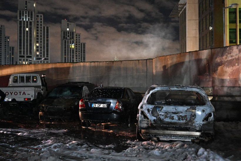 Olay sonucunda yangında yanan beş otomobil kullanılamaz hale geldi.
