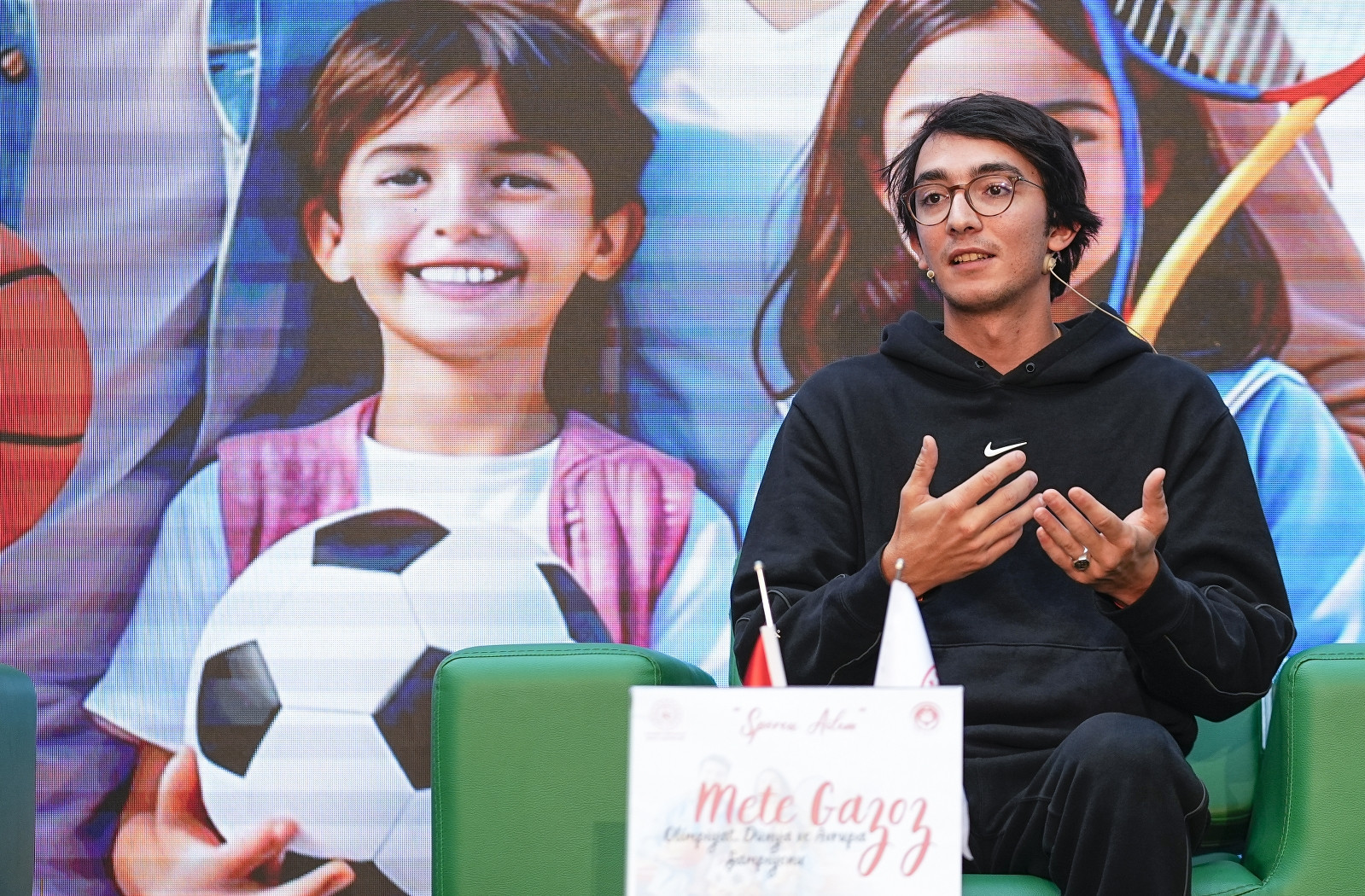 Mete Gazoz, sporcuların çalışma disiplinine dikkat çekerek, “Yetenek sizi ön plana çıkarır, ama çalışmak, gerçekten yetenekli insanların üstüne çıkar. 'Ben yetenekliyim, kesin başaracağım' düşüncesiyle yaklaşanlar başarılı olamazlar. Spor disiplininde anne-babalara düşen büyük bir görev var. Disiplin, öncelikle ailede başlıyor. Antrenmanın önemini çok küçük yaşta babam sayesinde öğrendim. Babam tüm gün çalışır ve akşamları evin salonunda antrenman yapardı.” ifadelerini kullandı.